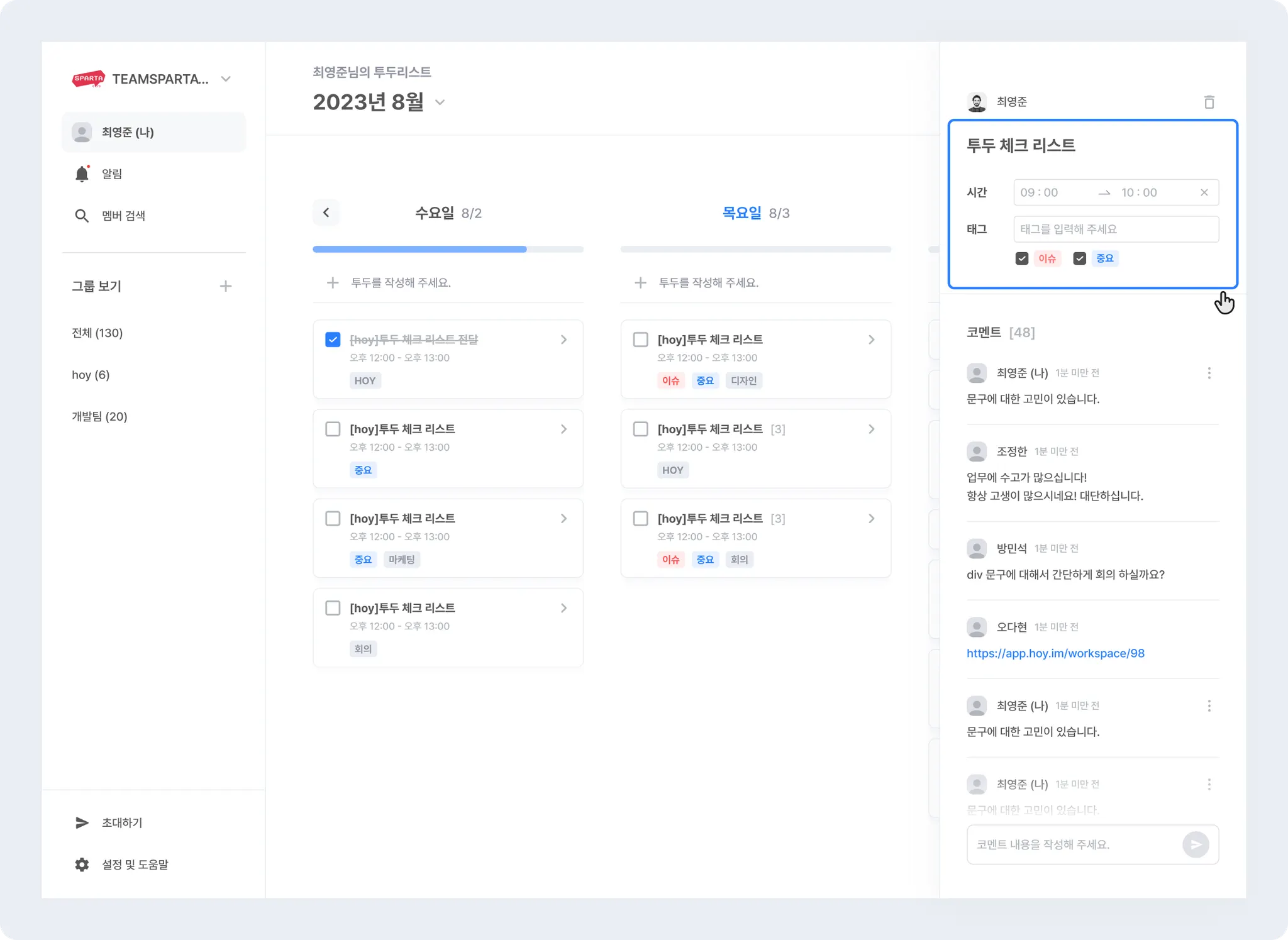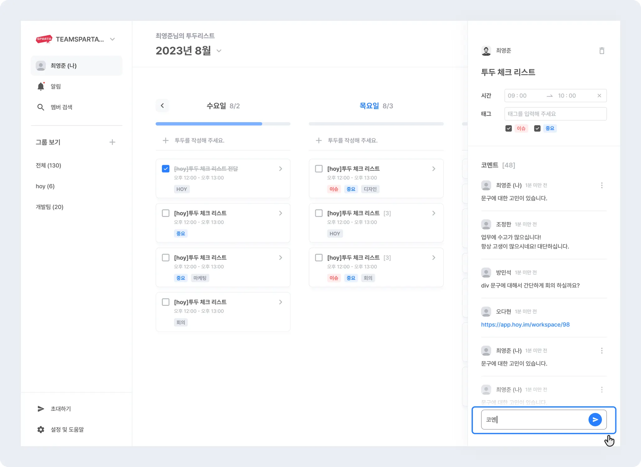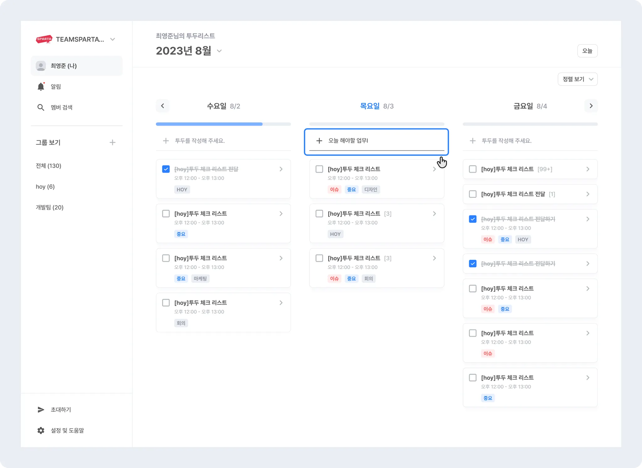 hoy에서 오늘 할 일을 작성하고 태스크들을 효율적으로 관리하러 가볼까요