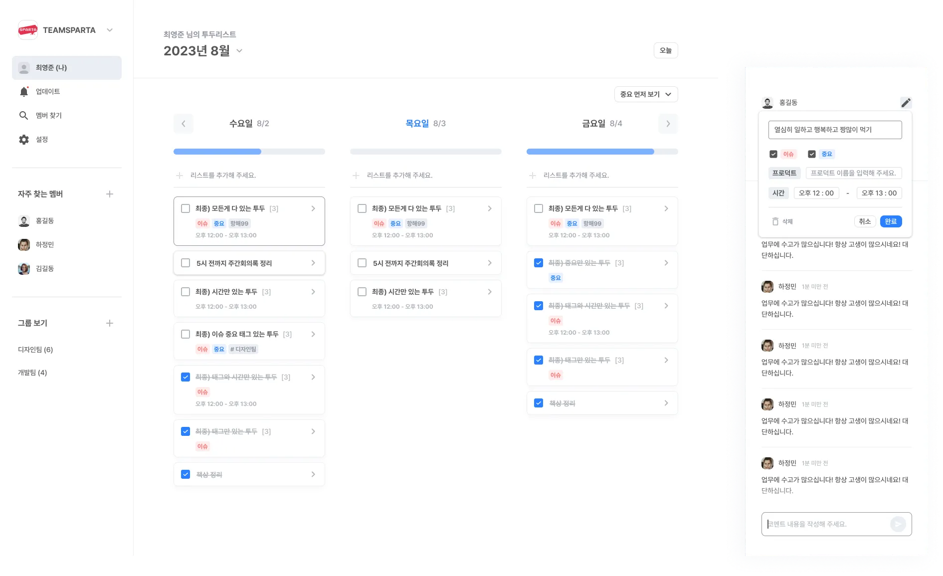 내 일정을 쉽게 변경할 수 있는 기능과 테스크를 빠르게 수정할 수 있는 기능까지 릴리즈했습니다.