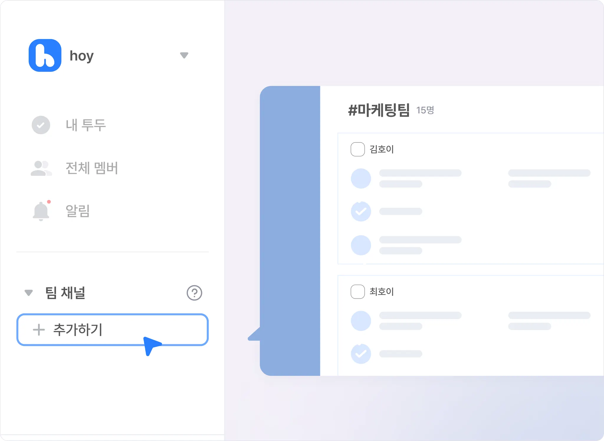 이러한 이유로, 호이는 오늘에 집중한 투명한 업무공유 투두리스트를 발전시키고 있습니다.