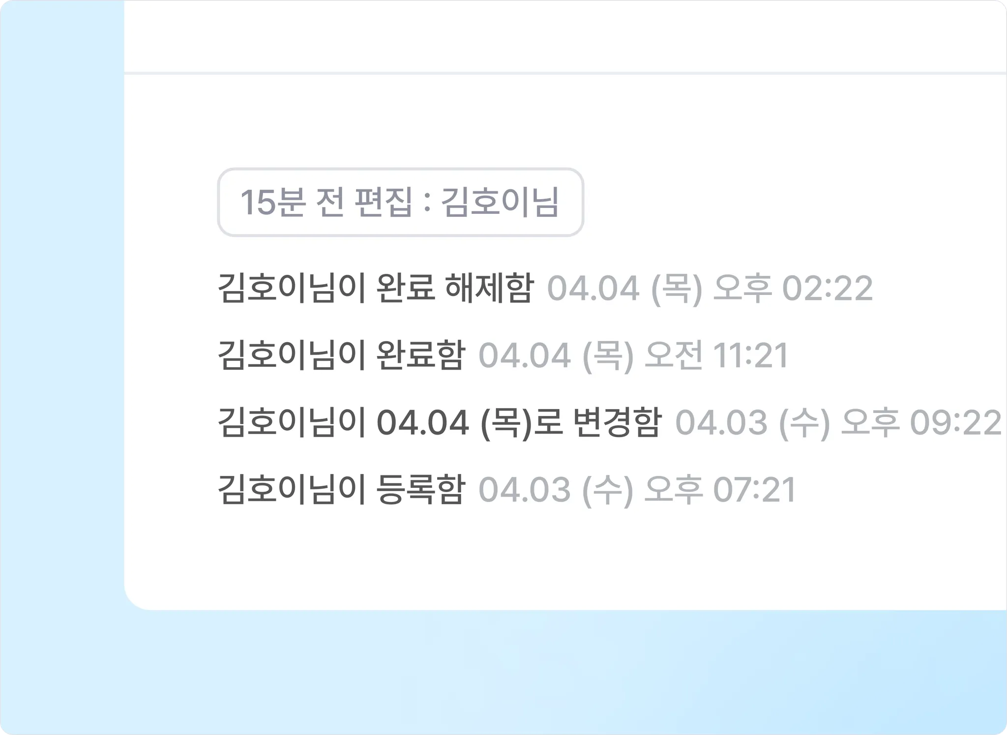 투두 등록 시점, 완료 시점, 날짜 변경에 대한 히스토리 로그를 확인할 수 있어요.