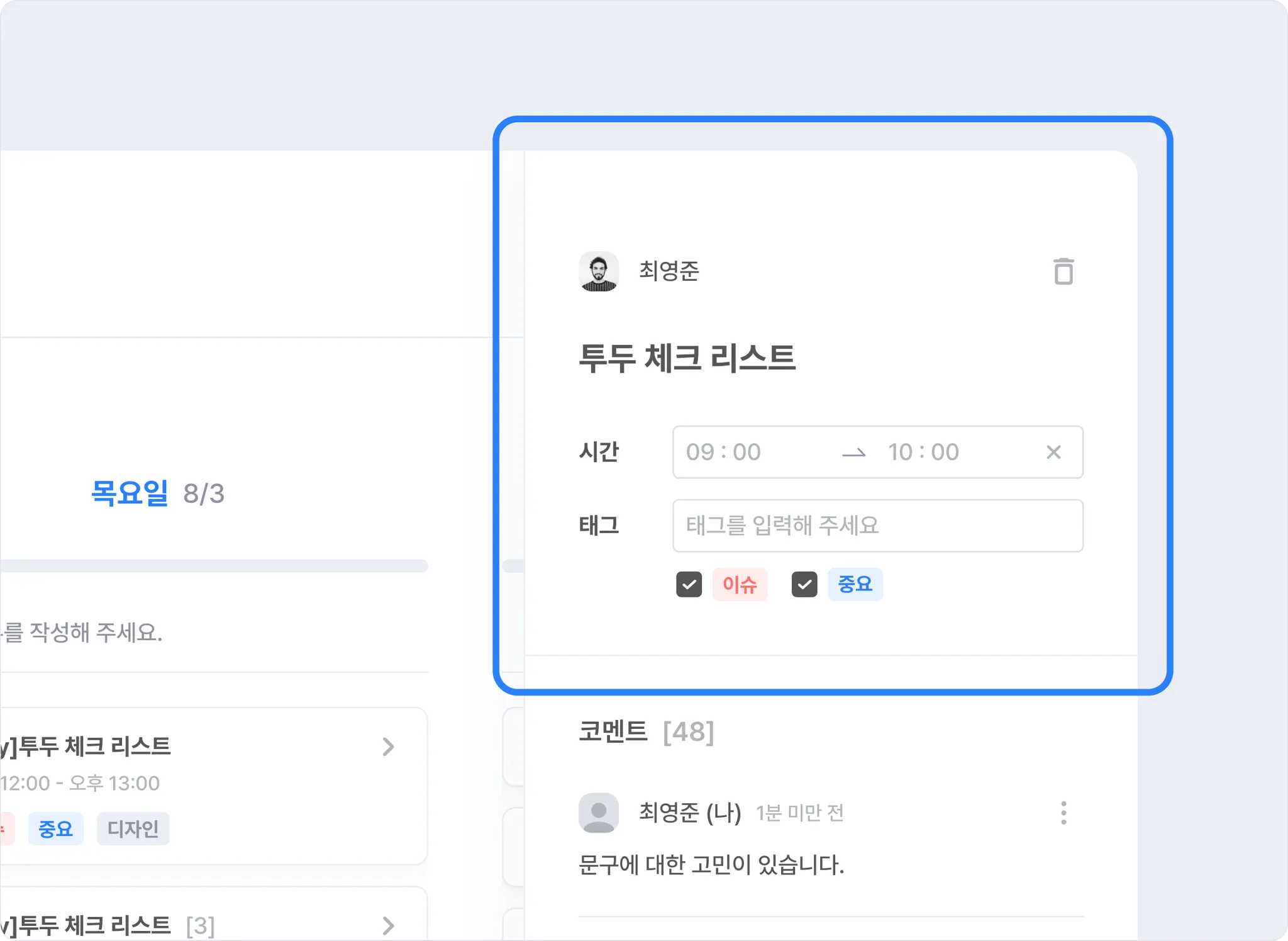 이제 더 적은 스크롤을 내려 팀원들의 할 일을 확인하세요.