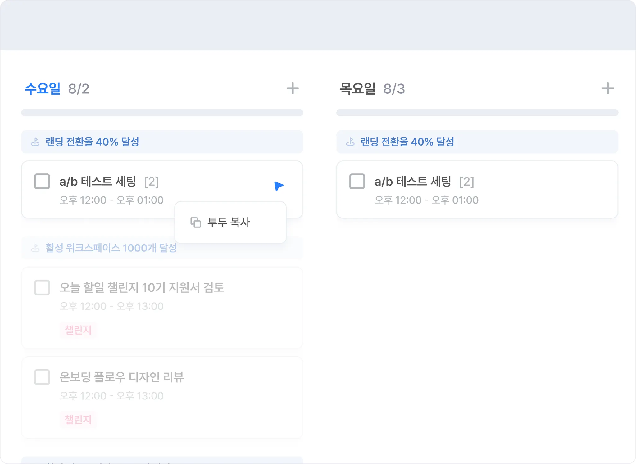 설정된 목표 기간 안에서 투두를 복사할 때 목표도 함께 복사되도록 개선했어요.