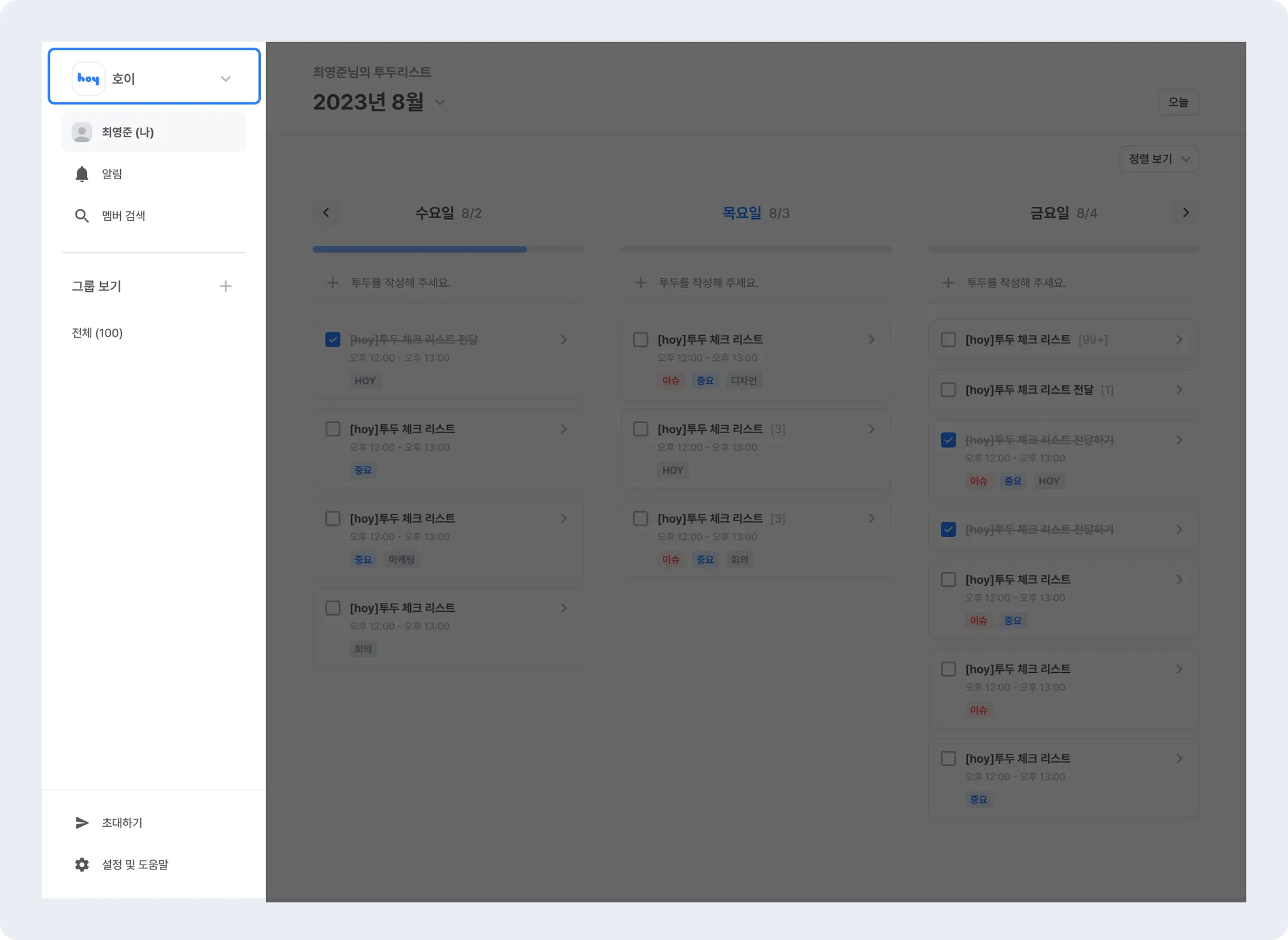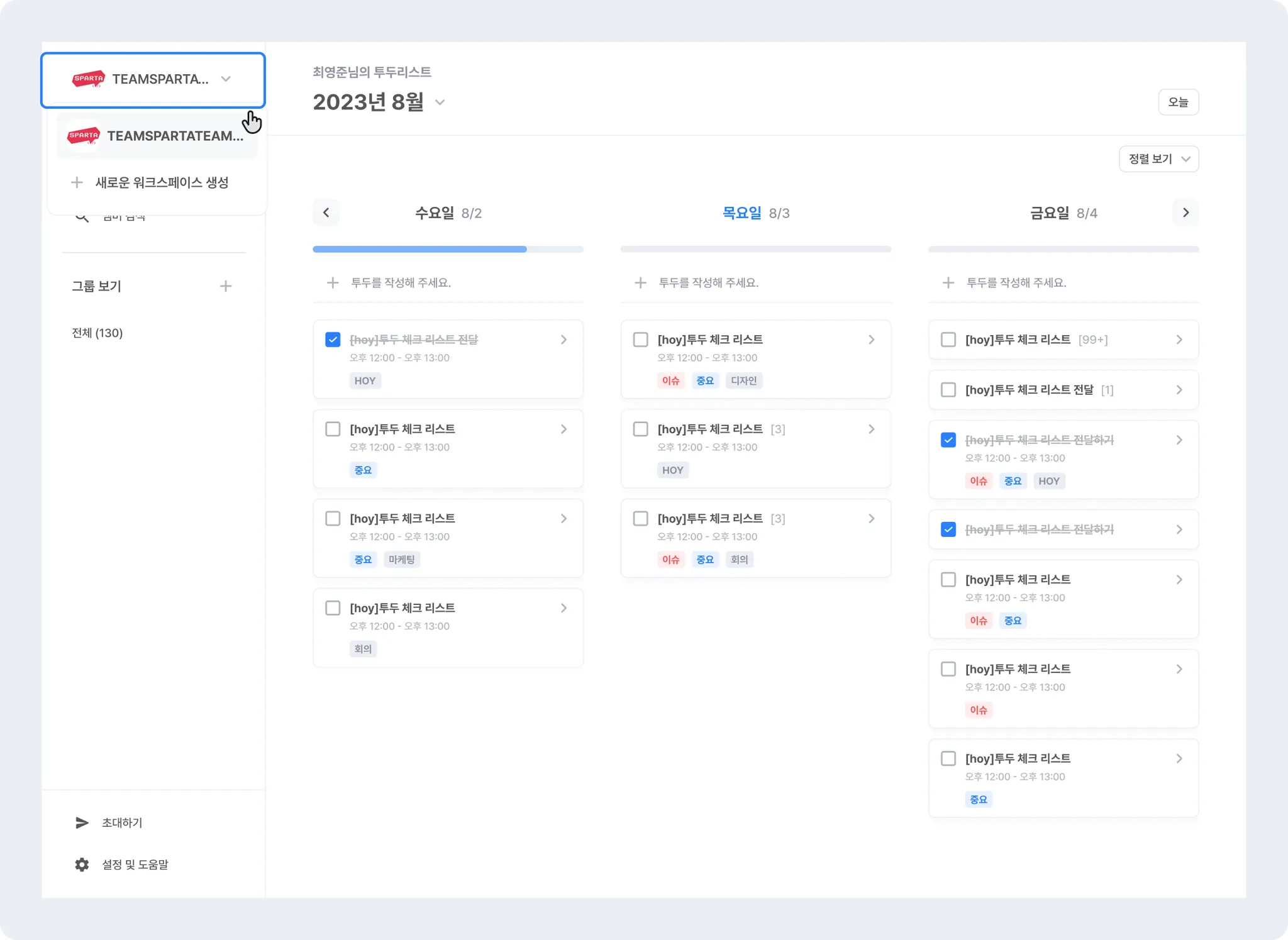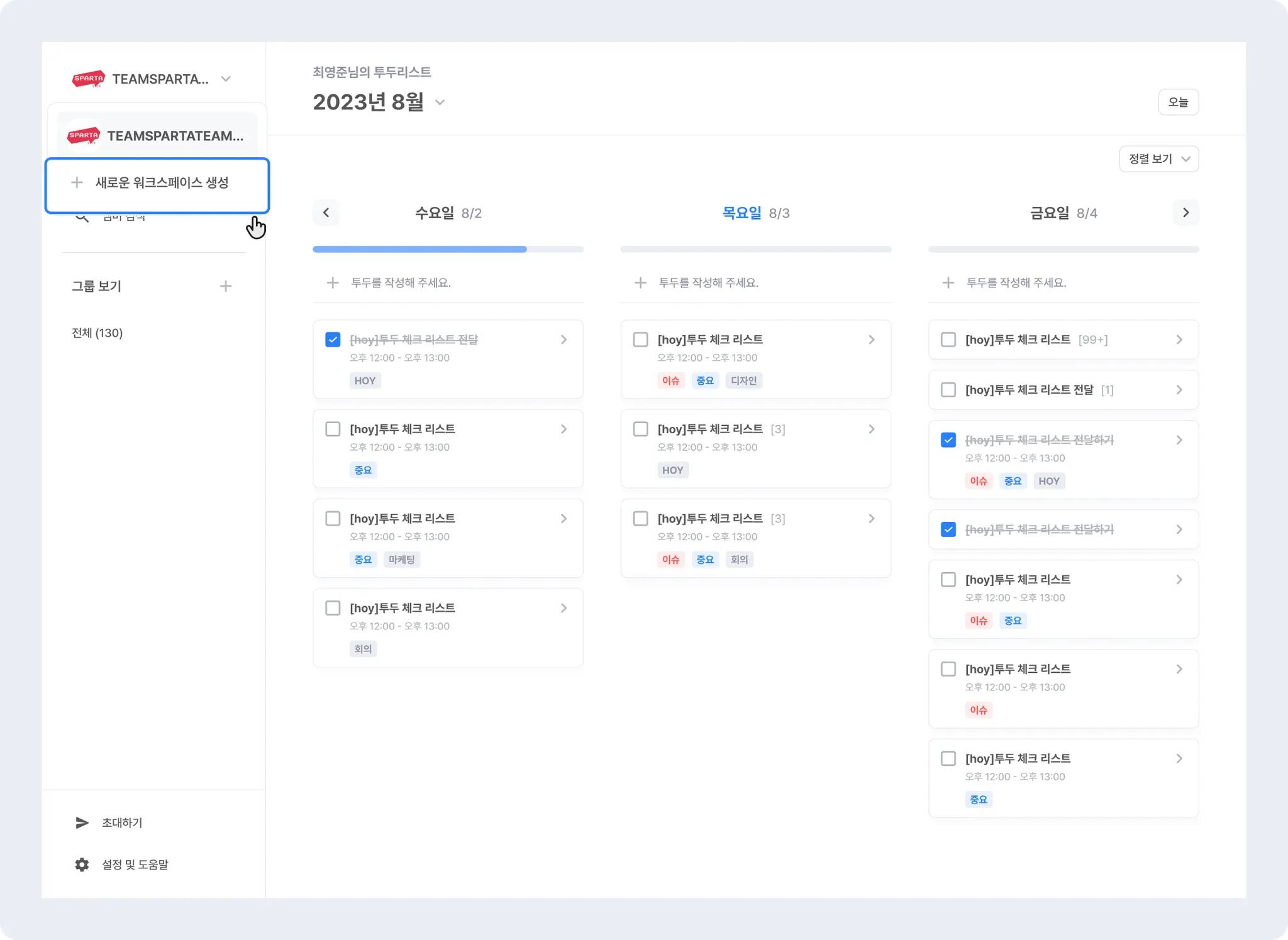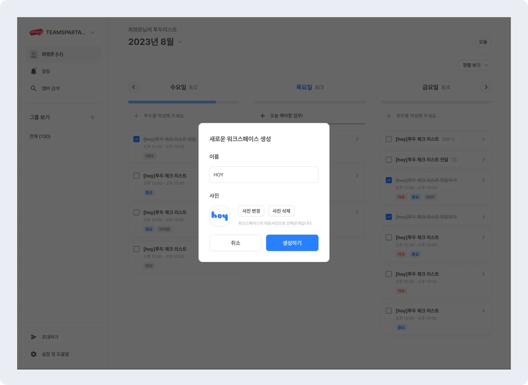현재 hoy에서는 무료로 여러개의 워크스페이스를 생성할 수 있는데요